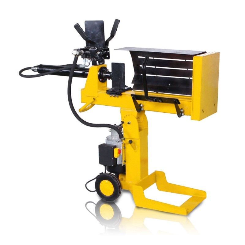 Cachadora Eléctrica o Astilladora eléctrica monofásica – Potencia 2.100 w, diámetro máximo 30 cm, largo máximo 52 cm, fuerza 10 T con trabajo en horizontal y vertical. Asa y rueda de transporte.