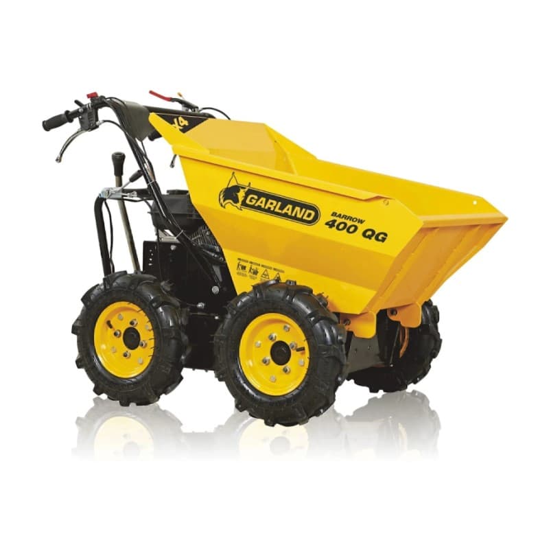 Carretilla Motorizada BARROW 400QG-V25 es ideal para los trabajos de jardinería, agricultura, el transporte de materiales o el trabajo en obra. Sus pequeñas dimensiones, la gran capacidad de carga y de maniobra la hacen la perfecta sustituta de la carretilla aumentando la productividad. Sistema de giro por bloqueo que consigue un radio de giro de menos de 1 metro. Una máquina con una elevada tracción que puede circular por las zonas más embarradas cargada hasta los topes.